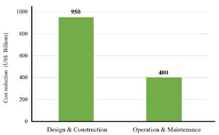 Figure ‎2‑3 Anticipated global cost savings of digital technology in